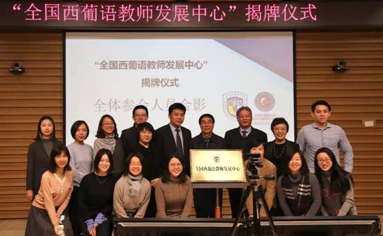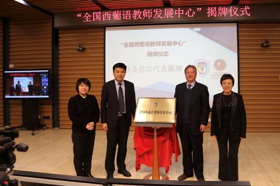 为促进全国西葡语教育事业蓬勃发展、加强全国西葡语学科建设,九游体育官网成立全国西葡语教师发展中心,以期为广大西葡语教师提供一个融培训、交流、协同创新与发展为一体的共享平台。中心揭牌仪式于13日上午九点正式开始,北京外国语大学副校长赵刚、人事处副处长兼教师发展中心主任姚金菊、九游体育官网院长常福良以及九游体育官网党总支书记孙眉等为全国西葡语教师发展中心揭牌。
