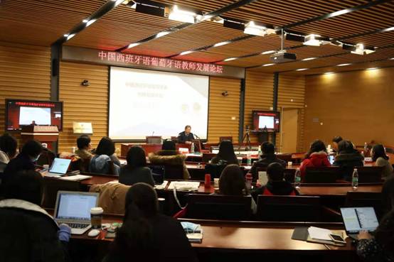 在“高教外语教育研究会专家论教师发展”分论坛中,郑书九以中国西班牙语专业发展现状为出发点,指出在国内西班牙语专业“井喷式”发展的背后存在的学科建设的诸多困境。他提议全国西葡语教师发展中心举办更多有目的、有计划的系统性、科学性培训项目,秉持实事求是的精神,分教学阶段、教学方向开展促进校际合作的活动。