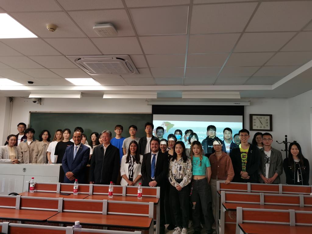 2021年5月7日下午,乌拉圭驻华使馆邀请乌拉圭历史老师潘慧敏(Georgina Pagola)、张哲海(Liber Di Paulo)(两位历史老师目前在上海大学就读)为北外九游体育官网西班牙语专业高年级学生作了题为“民族英雄阿蒂加斯:伟大的拉美解放者”的讲座。