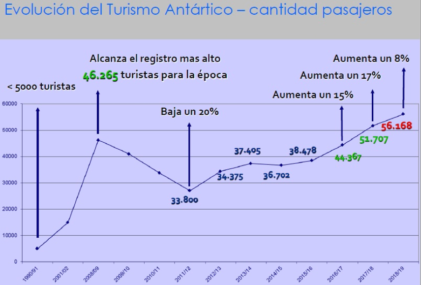 (Fuente: Ministerio de Relaciones Exteriores, Comercio Internacional y Culto Argentina, https://cancilleria.gob.ar/es/iniciativas/dna/proteccion-del-medio-ambiente/turismo-antartico )